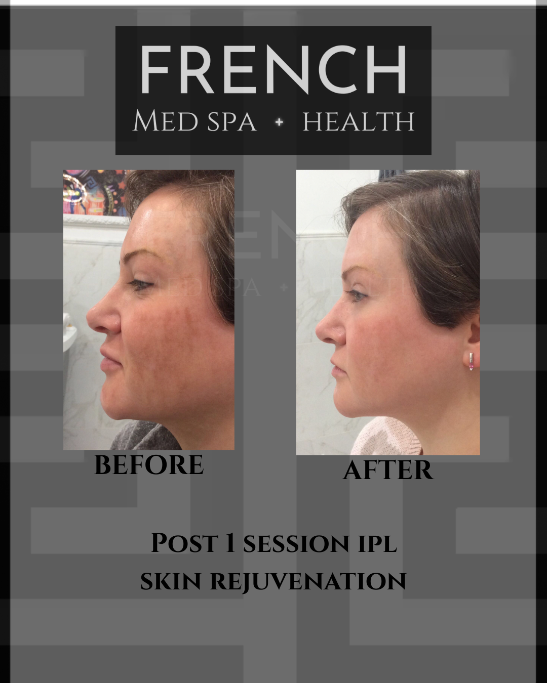 Some transformations are soft and powerful. Intense pulsed light therapy at French Med Spa + Health refines your skin’s tone, texture, and clarity—all while supporting a naturally luminous appearance. It’s a radiant reset powered by next-generation technology and our signature precision. This treatment addresses visible skin concerns, including: